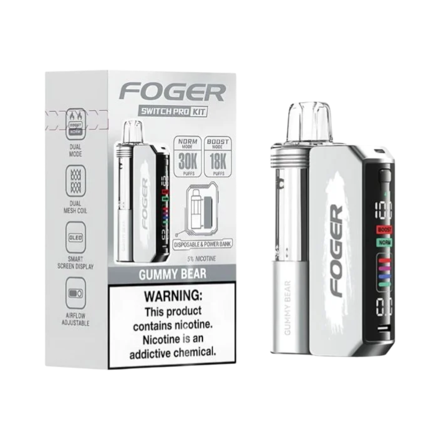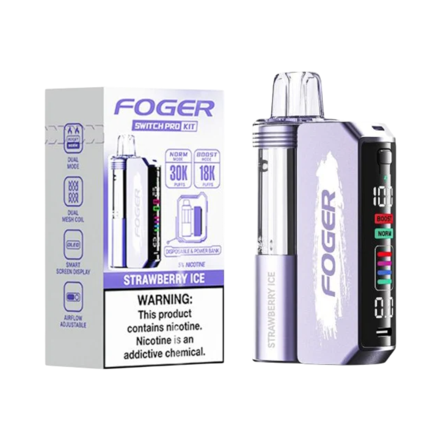 Discover the Foger Switch Pro 30K Disposable, featuring a 1050mAh battery, a magnetically removeable power bank, integrated dual-mesh coils, dual power modes, and OLED display, and longevity up to 30K puffs on Normal Mode.