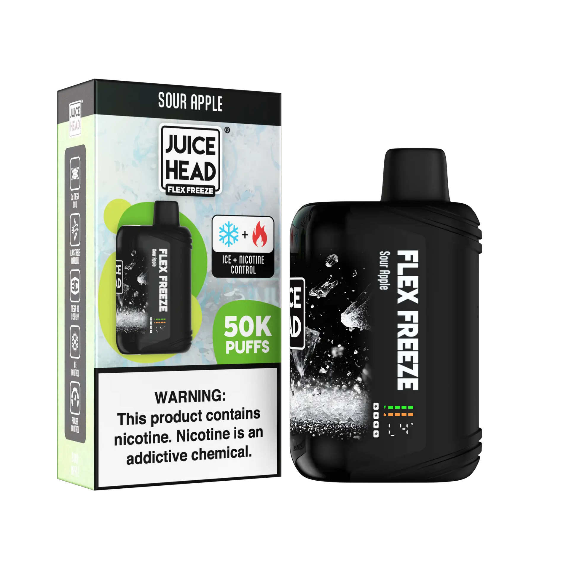 Unleash the ultimate disposable vape experience with the Juice Head Flex Freeze 50K Disposable! Engineered for the modern vaper, this innovative device combines massive puff capacity with unprecedented control, allowing you to fine-tune your flavor and chill level with ease. Say goodbye to guesswork and hello to your perfect, personalized vape.