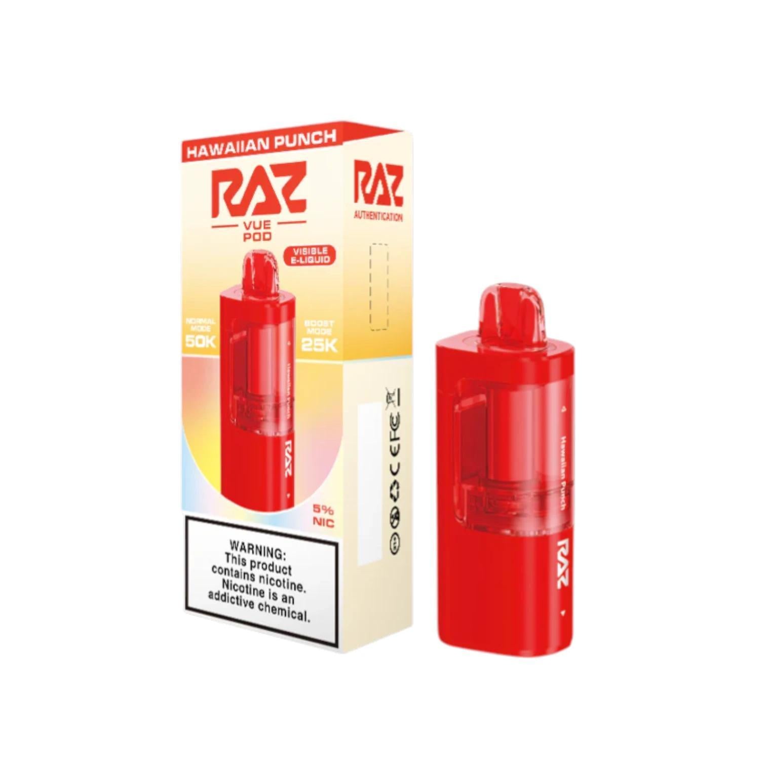Check out the RAZ VUE 50K Pods, featuring a 13mL capacity, 25-50K puff delivery, and must be recharged via battery bank from the RAZ VUE Kit.
